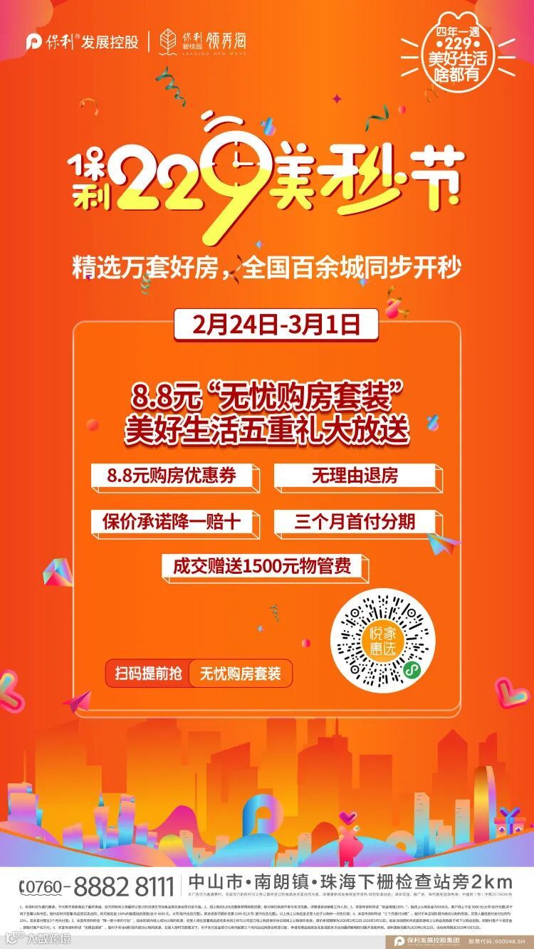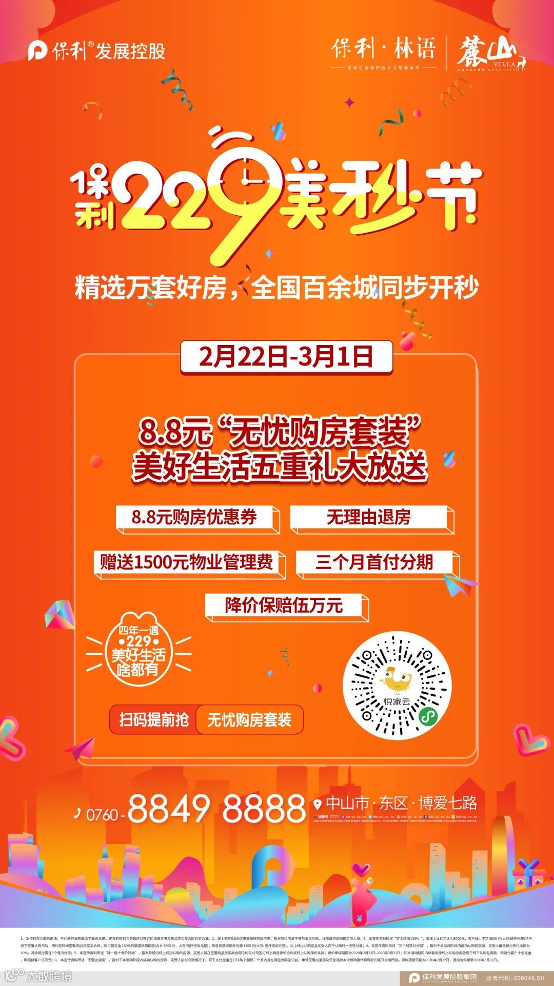 保利优质房源让利惊喜折扣——229美miao节期间,全线产品可享“8.8元无忧套装”,简单几步助你无忧买房。