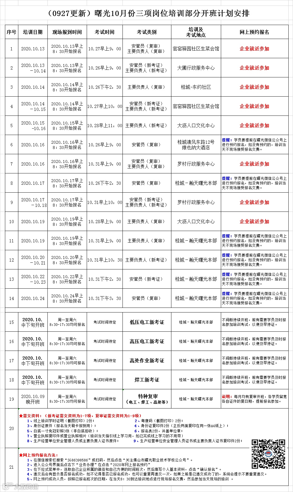(0927更新)曙光10月份三项岗位培训部分开班计划安排 佛山市曙安安全技术服务公司