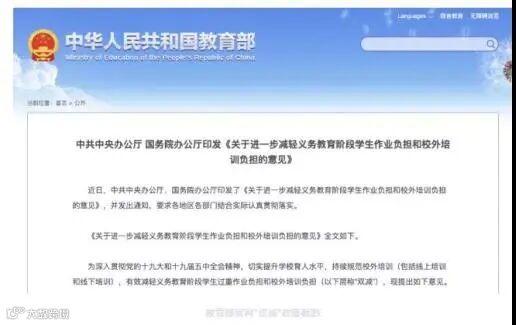 教育部发布”双减“政策|图源网络