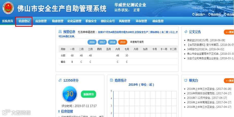 2.在佛山市应急管理局“智能安监”平台上完善填报录入。