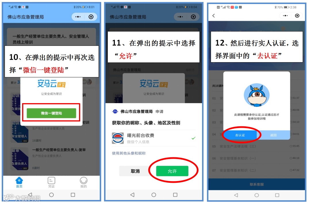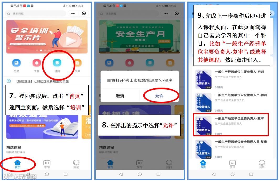 说明:因为佛山应急管理局开发的,免费提供给二类人员进行线上学习的平台“安马云课堂”近日进行了升级迁移,我校5月20日发布的操作流程指引已不适用,现我校重新整理操作流程进行发布,请各有需要学员参照步骤指引进行操作: