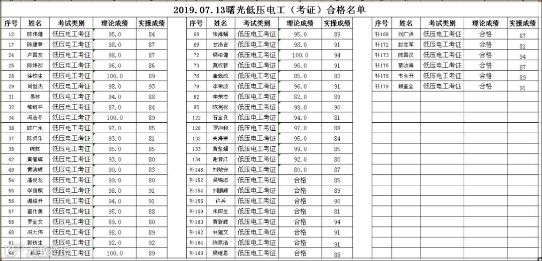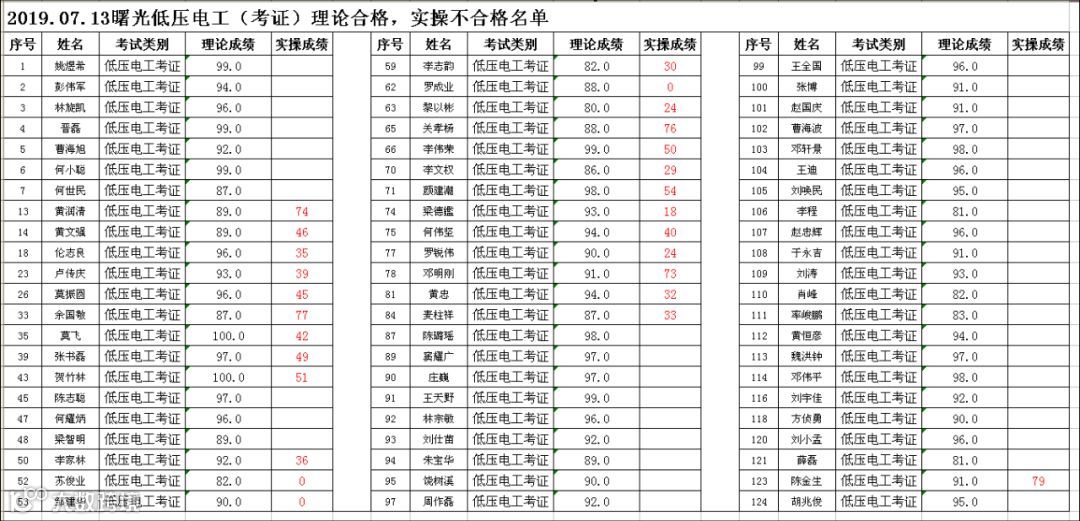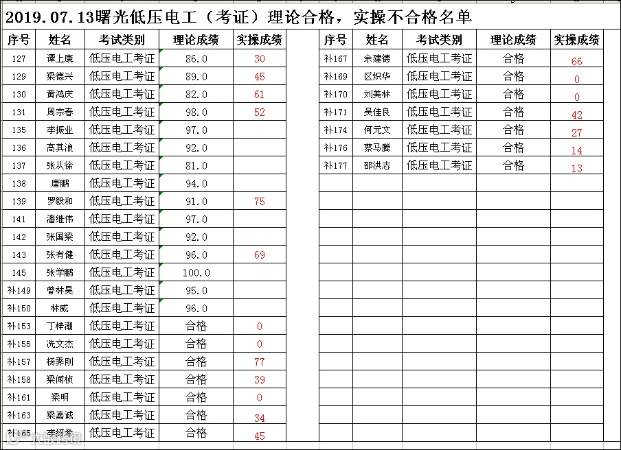 2019.07.13曙光低压电工(考证)理论合格,实操不合格名单