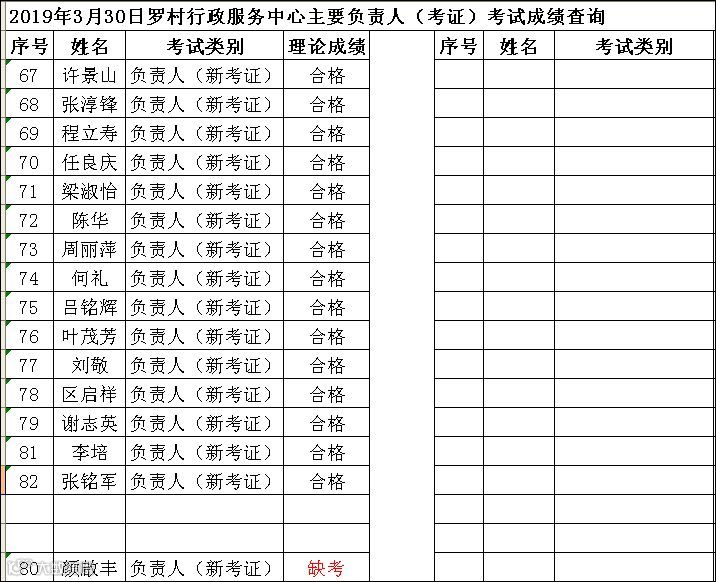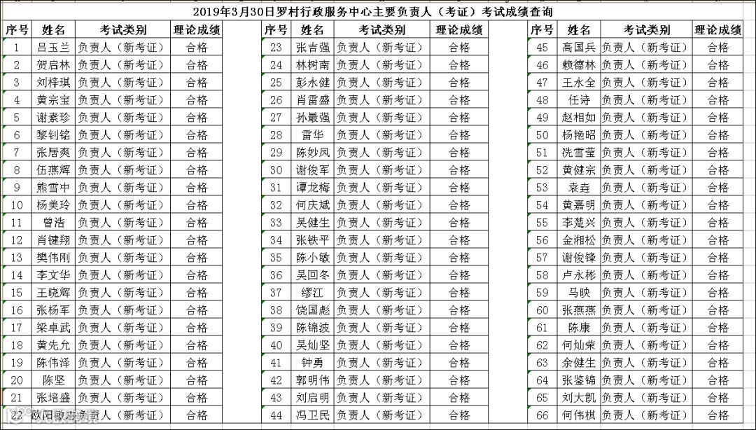 2019.03.30罗村行政服务中心主要负责人(考证)考试成绩查询