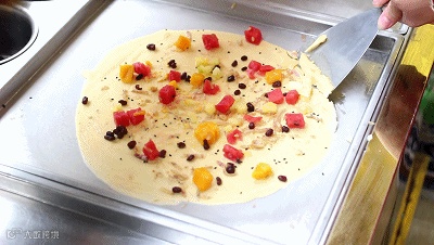 炒酸奶原本是泰国的一道街头美食,它采用水果、酸奶以及坚果,在制冷机里不断进行翻炒,吃上一口,冰脆爽滑、解热消暑,同时又老少皆宜。