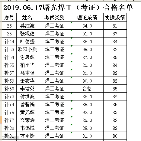 2019.06.17曙光焊工(考证)考试合格名单