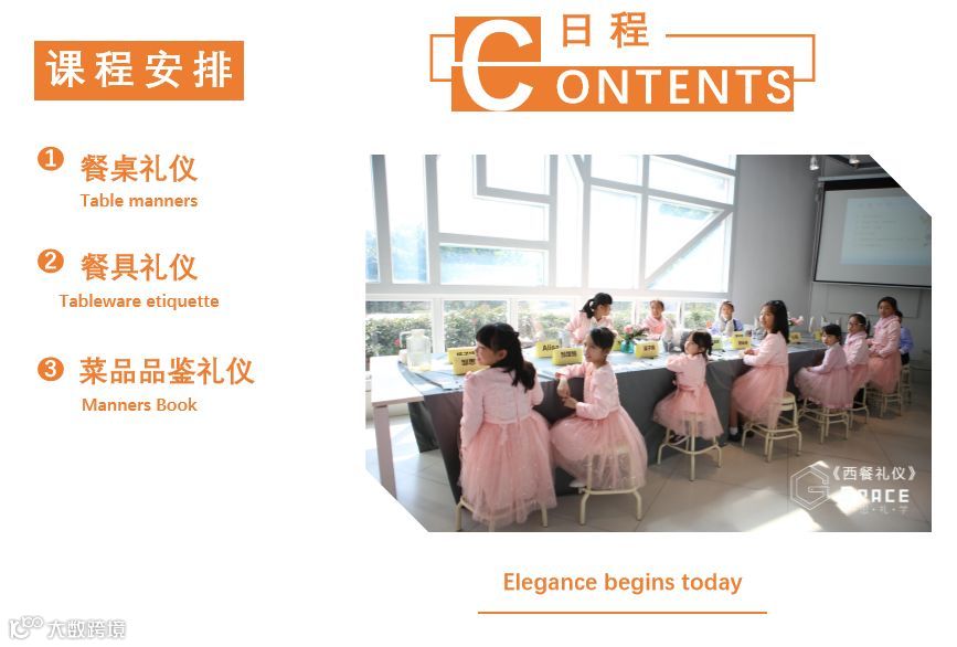 本次体验活动分为课程安排和用餐安排两大部分。其中,课程方面将从餐桌礼仪、餐具礼仪和菜品品鉴礼仪等方面展开。课程结束后,孩子们还有机会学以致用,在导师的指导下尽情享受到三文治、蛋糕、水果、饮料等丰富美食。