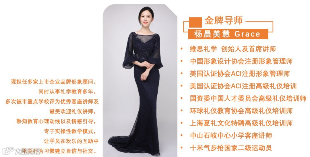 值得一提的是,本次课程导师将由维思礼学创始人及首席讲师杨晨美慧女士担任。据了解,杨晨美慧女士现担任多家上市企业品牌形象顾问,同时从事礼学教育多年,多次被市重点学校评为优秀客座讲师及最受欢迎礼仪讲师。