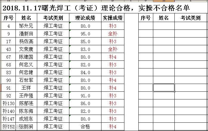 2018.11.17曙光学校焊工(考证)理论合格,实操不合格名单