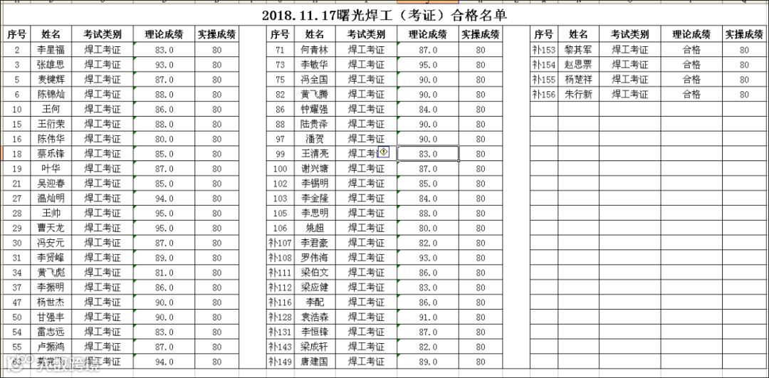 2018.11.17曙光学校焊工(考证)合格名单