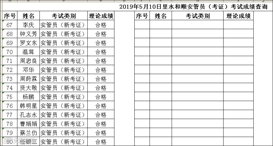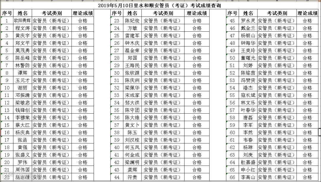 2019.05.10里水和顺安管员(考证)考试成绩查询