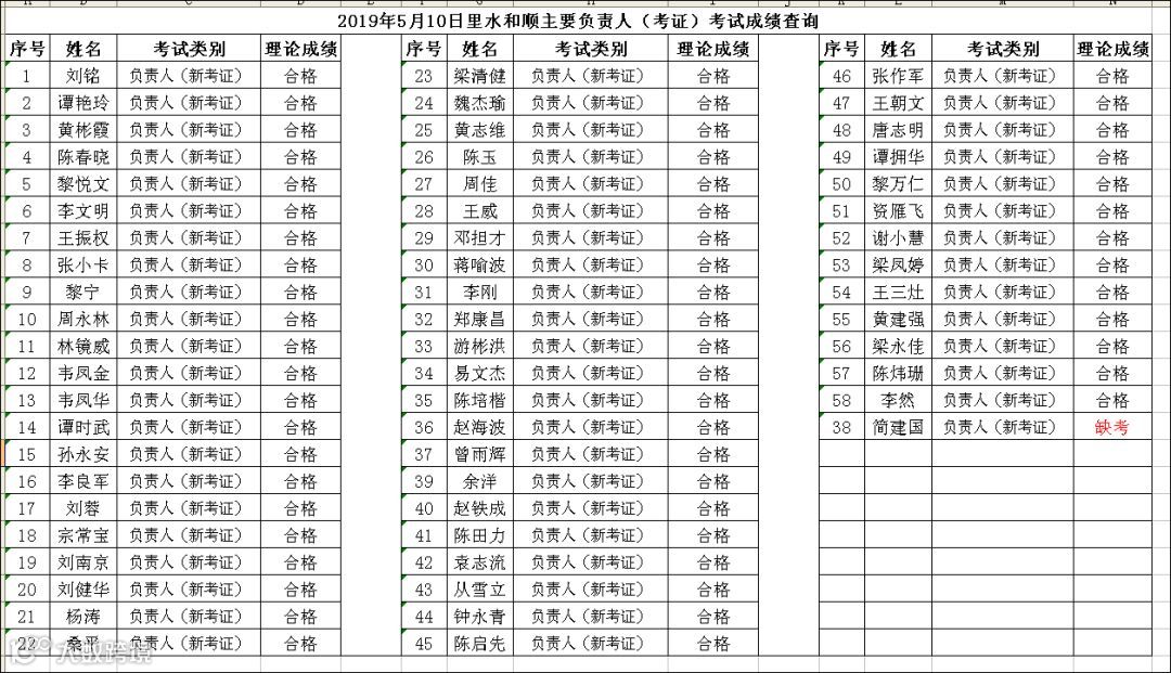 2019.05.10里水和顺主要负责人(考证)考试成绩查询