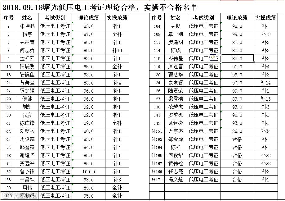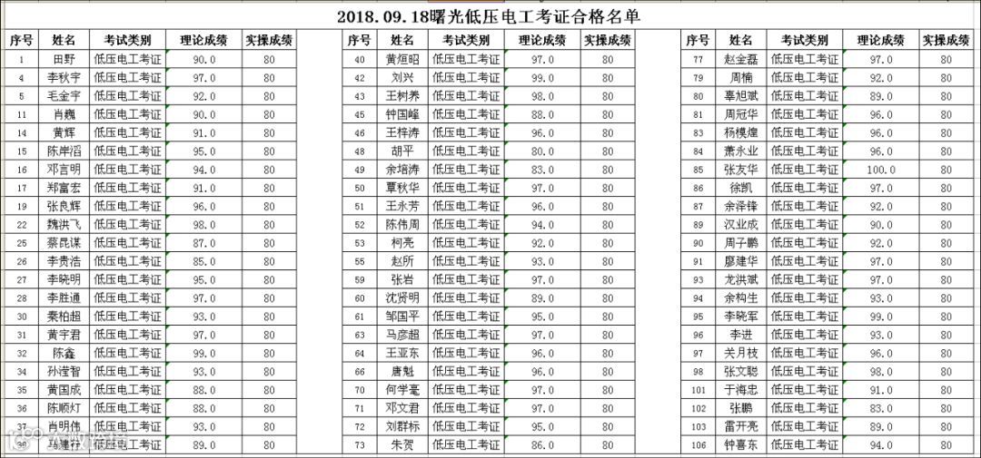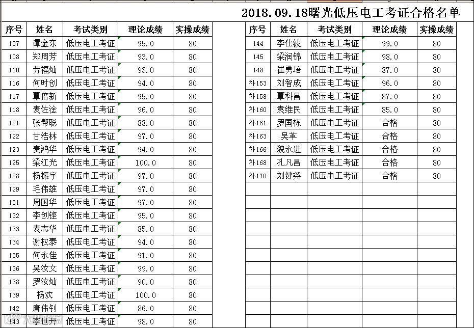 2018.09.18曙光低压电工(考证)考试合格名单