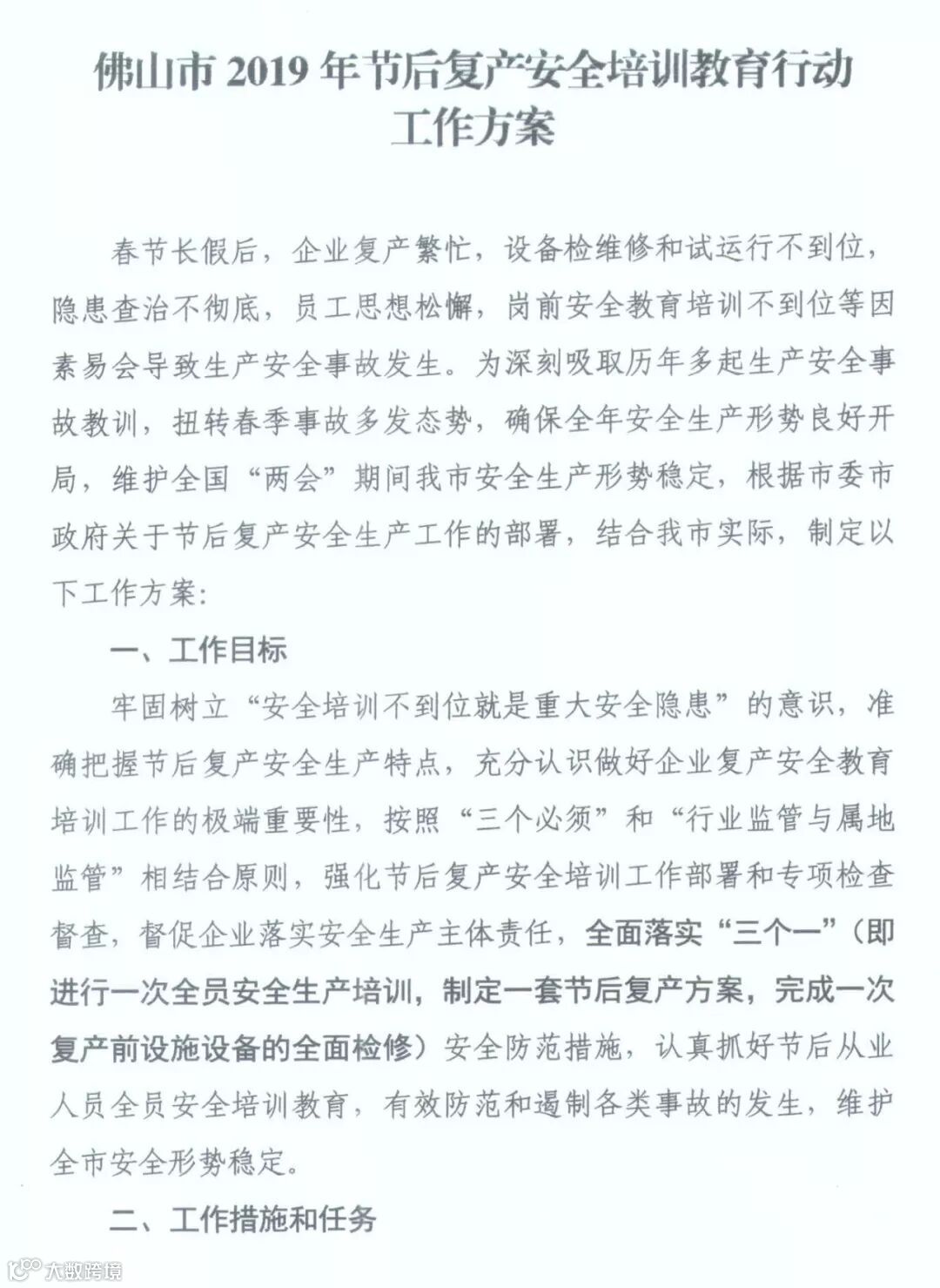 春节长假后,企业复产繁忙、设备检维修和试运行不到位、隐患查治不彻底、员工思想松懈、岗前安全教育培训不到位等因素易导致生产安全事故发生。为深刻吸取历年多起生产安全事故教训,扭转春季事故多发态势,确保全年安全生产形势良好开局,市安委办提早谋划于1月9日印发了《佛山市2019年节后复产安全培训教育行动工作方案》,方案要点如下: