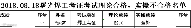 2018.08.18曙光焊工(考证)考试理论合格,但实操不合格名单
