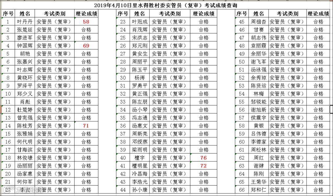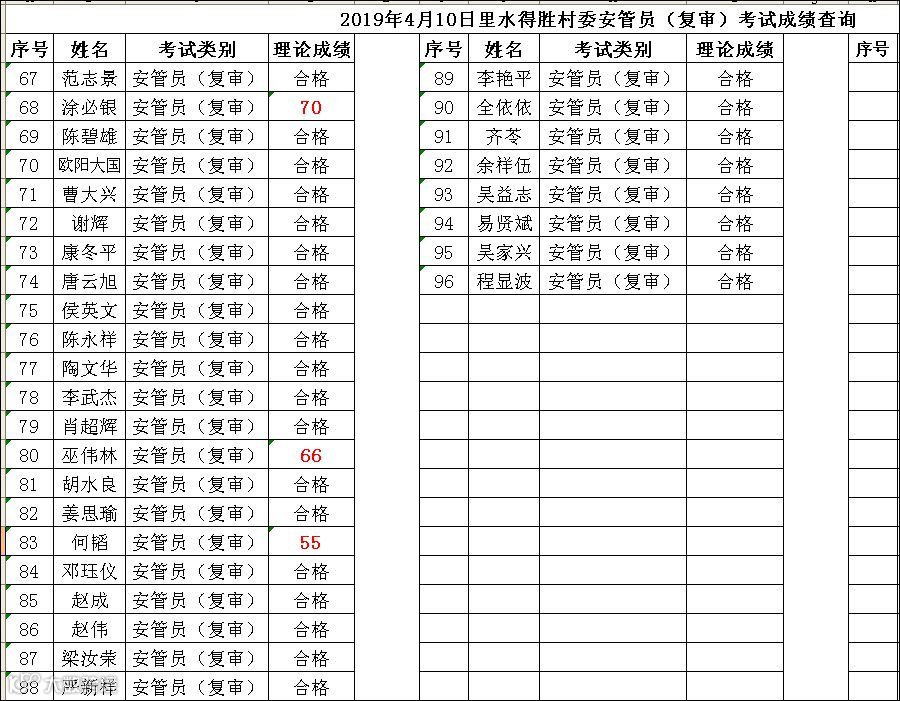 2019.04.10里水得胜村委安管员(复审)考试成绩查询