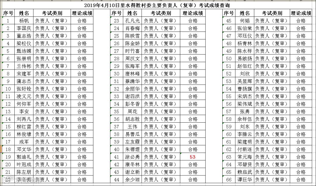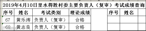 2019.04.10里水得胜村委负责人(复审)考试成绩查询