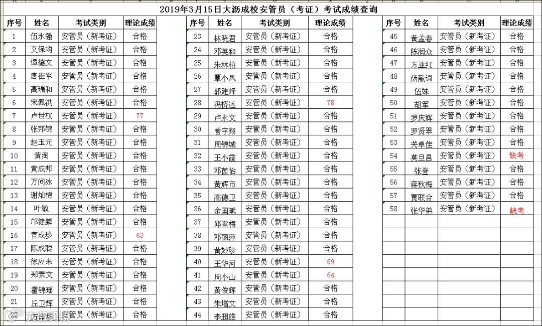 2019.03.15大沥成校安管员(考证)考试成绩公布