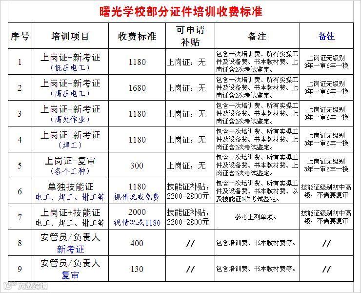 为了进一步完善我校教学服务质量,更好地为企业和学员提供更优质的培训服务。现我校于2019年3月1日执行以下新的收费标准及考试规定:
