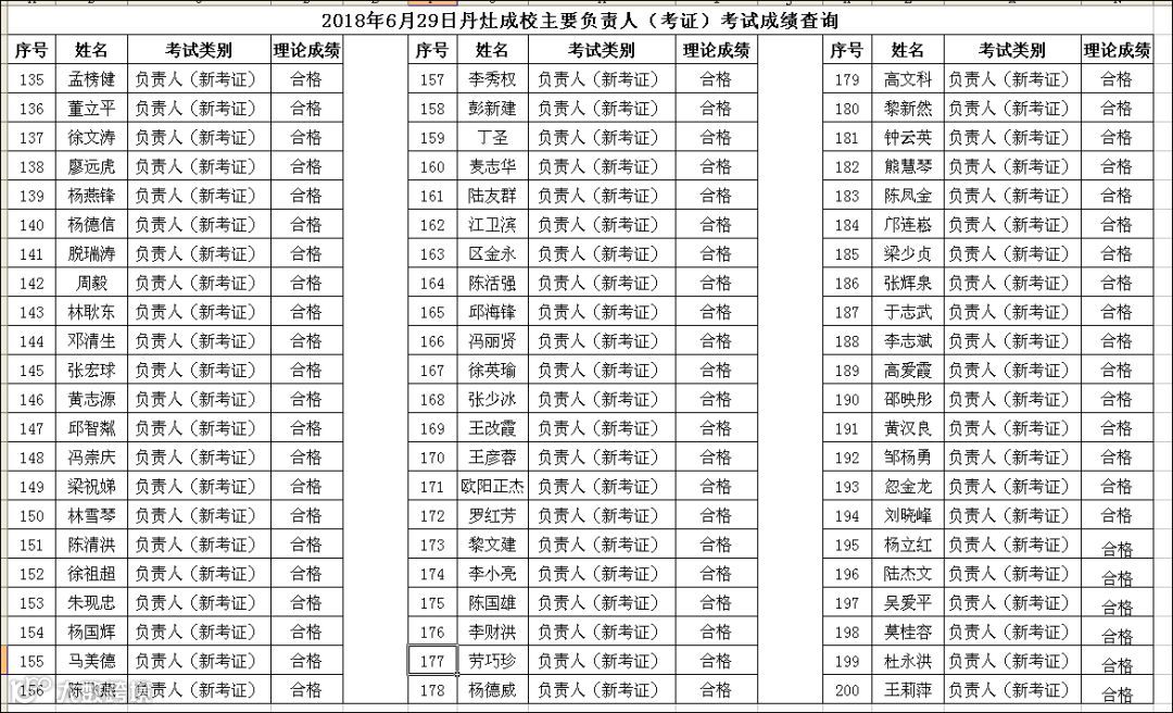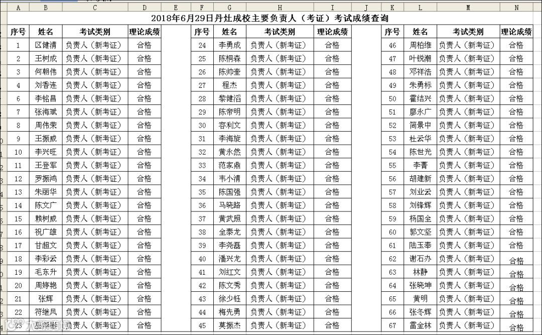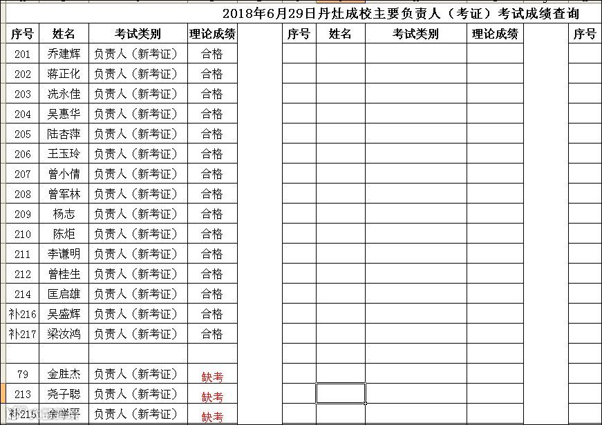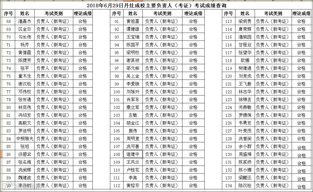 导读:2018.06.29丹灶成校主要负责人(考证)考试成绩查询