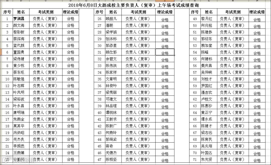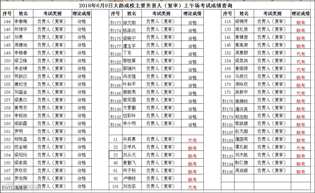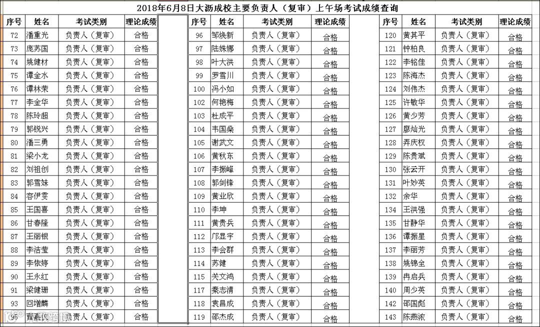 2018.06.08大沥成校主要负责人(复审)上午场考试成绩查询
