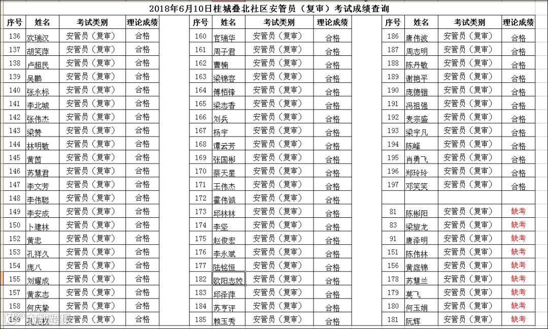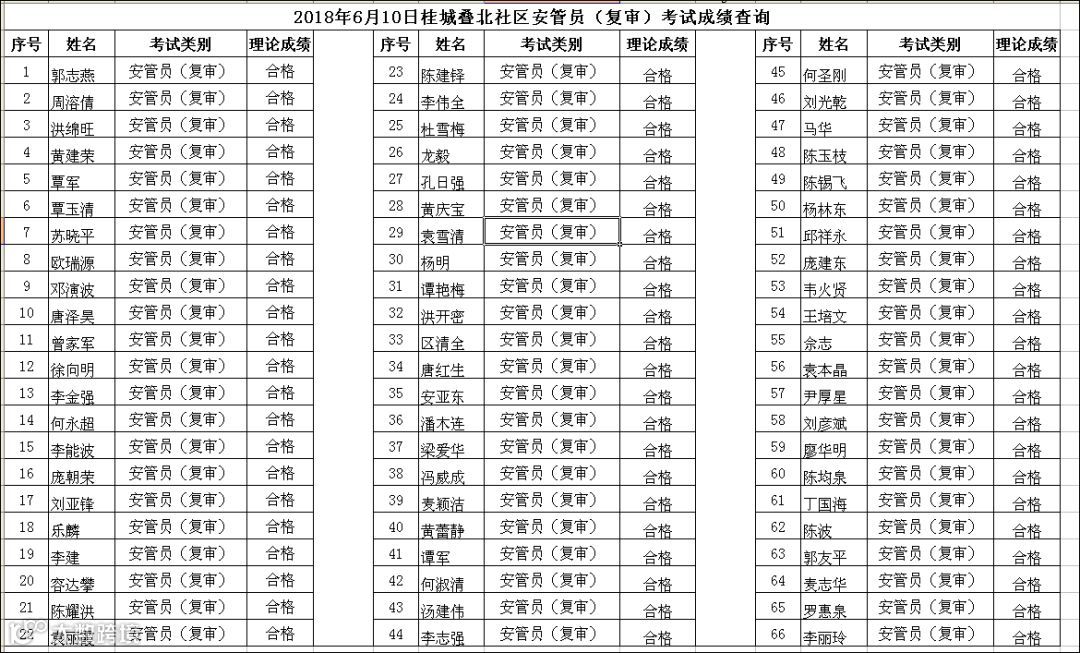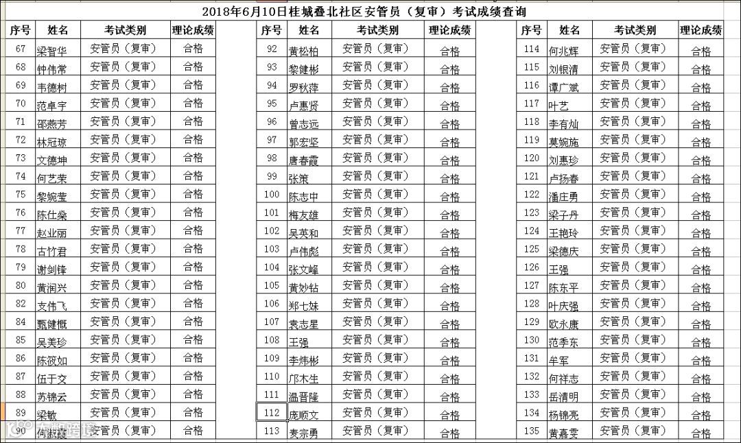 导读:2018.06.10桂城叠北社区安管员(复审)考试成绩查询