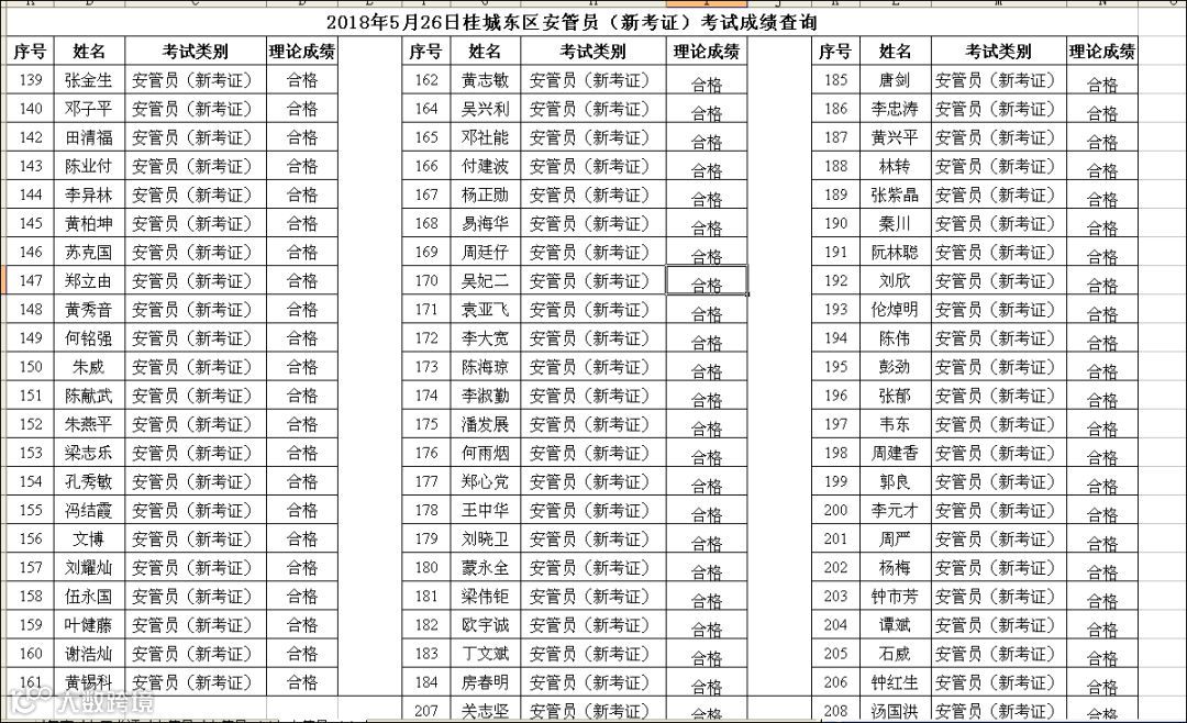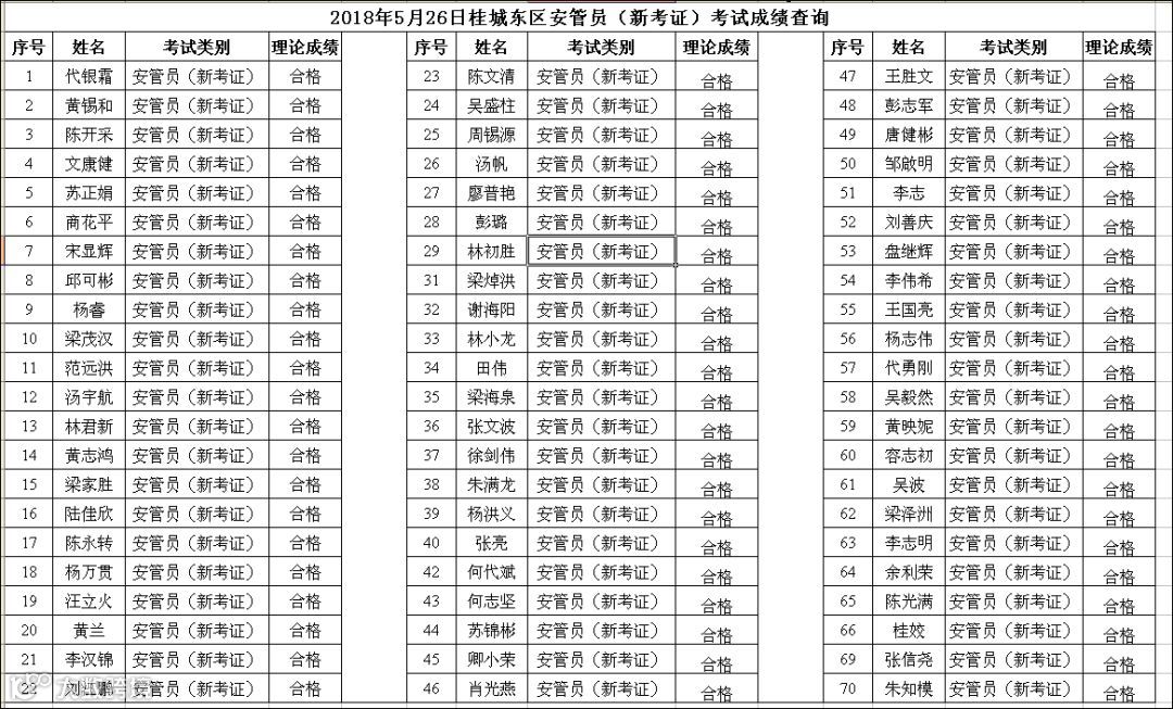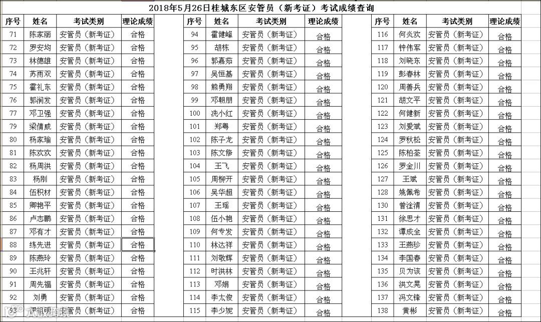 导读:2018.05.26桂城东区社区安管员(考证)考试成绩查询