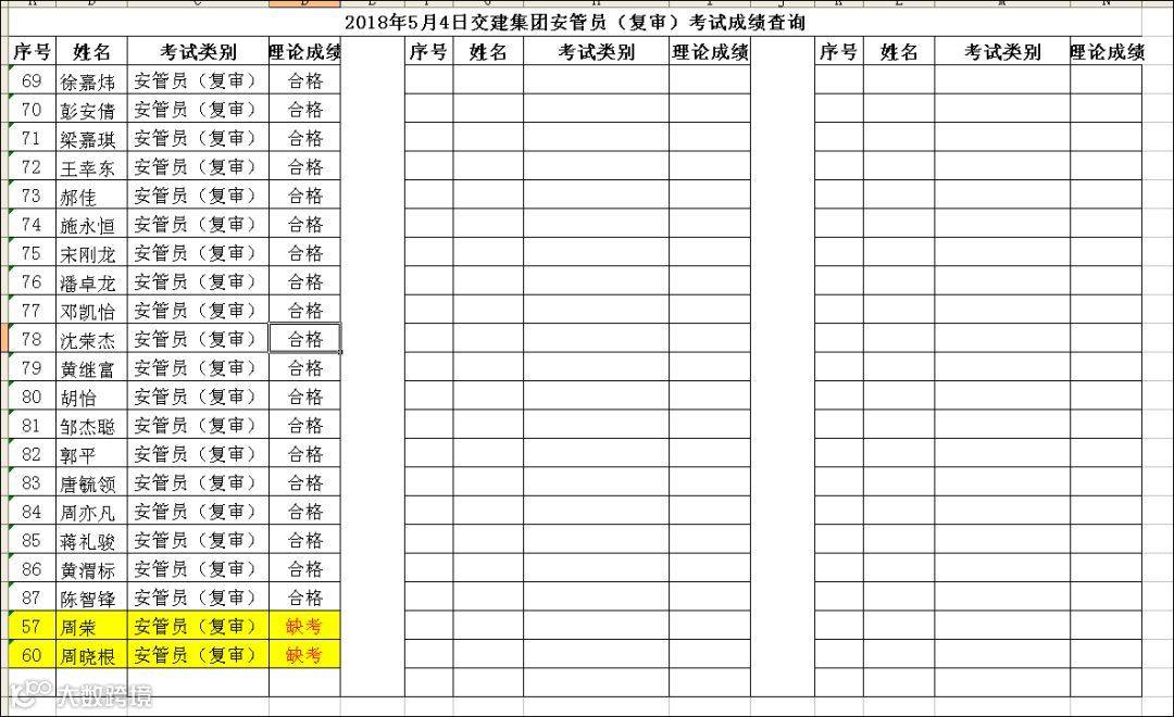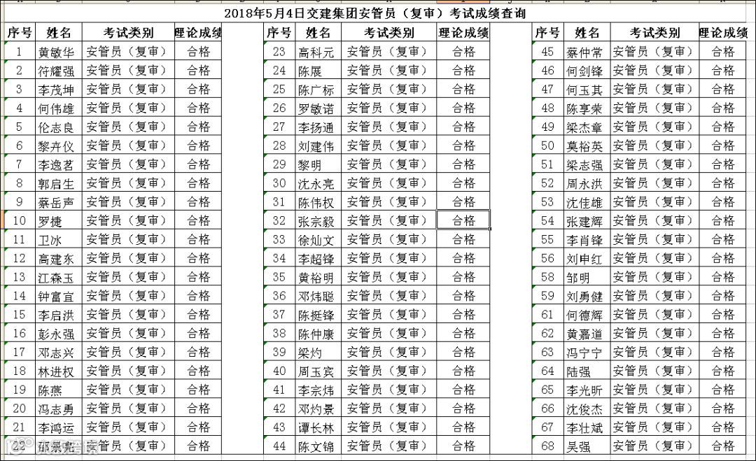 2018.05.04交建集团安管员(复审)+负责人(复审)考试成绩查询