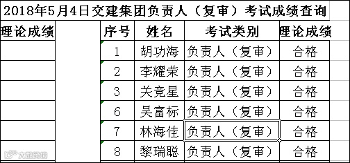2018.05.04交建集团负责人(复审)考试成绩查询