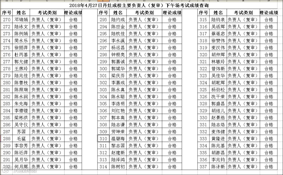导读:2018.04.27丹灶成校主要负责人(复审)下午场考试成绩查询