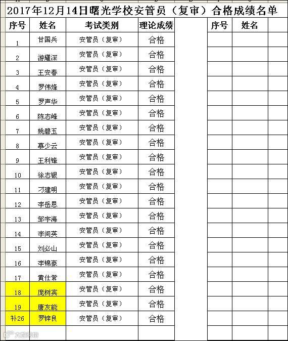 2017.12.14曙光学校安管员(复审)合格成绩名单