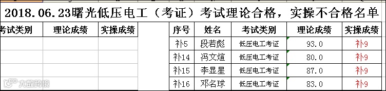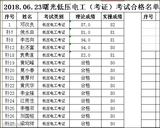 2018.06.23曙光低压电工(考证)考试理论合格,实操不合格名单