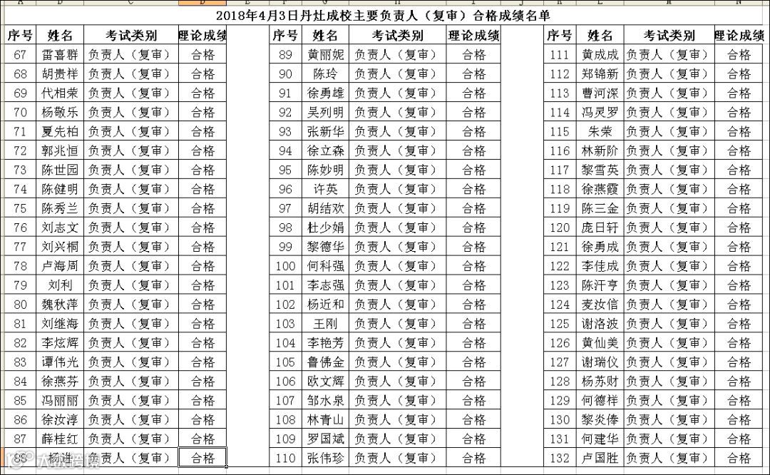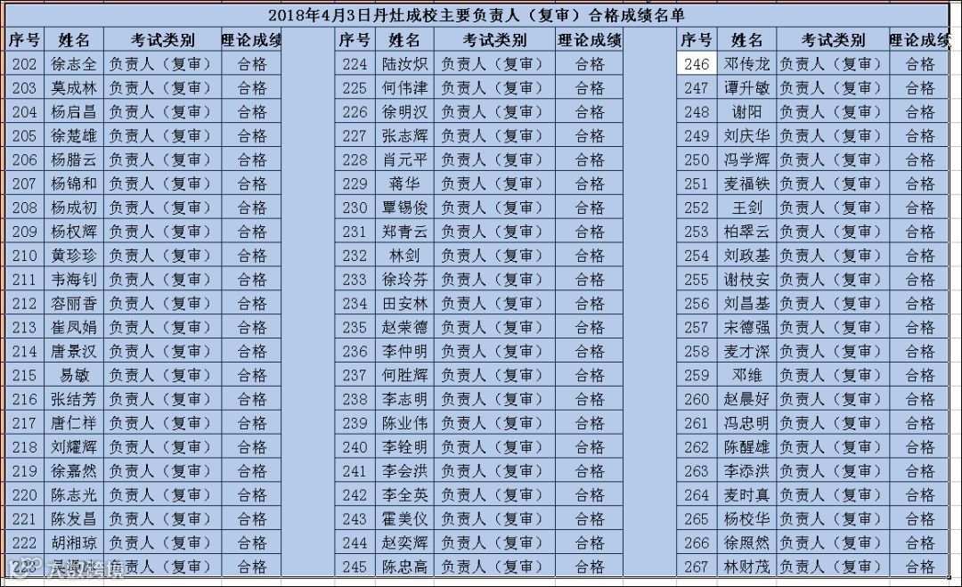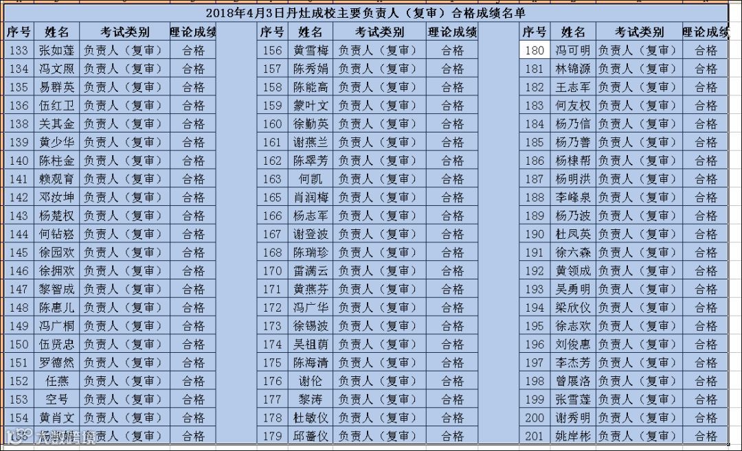 2018.04.03丹灶成校负责人(复审)考试合格名单