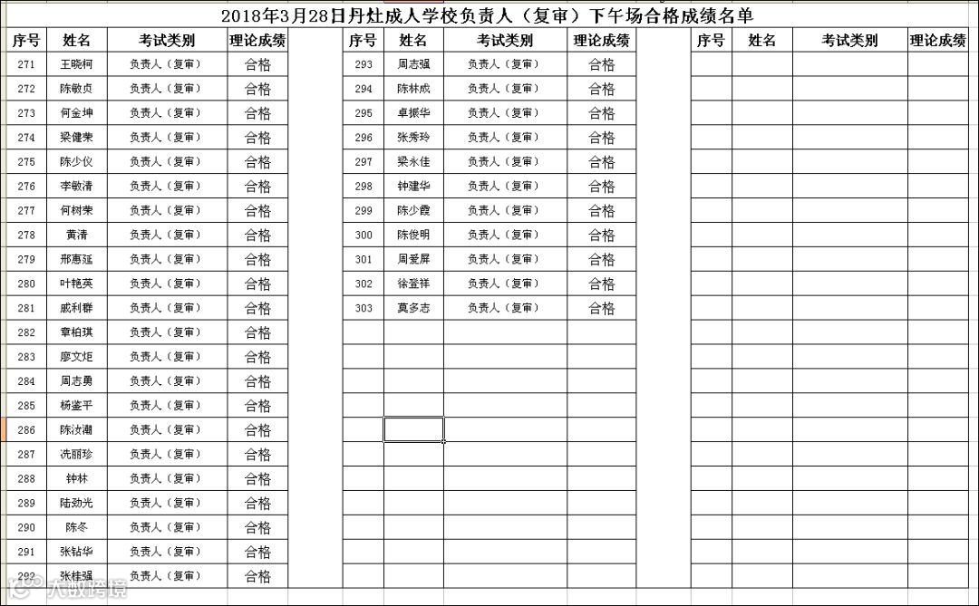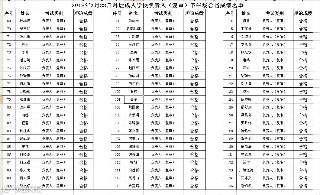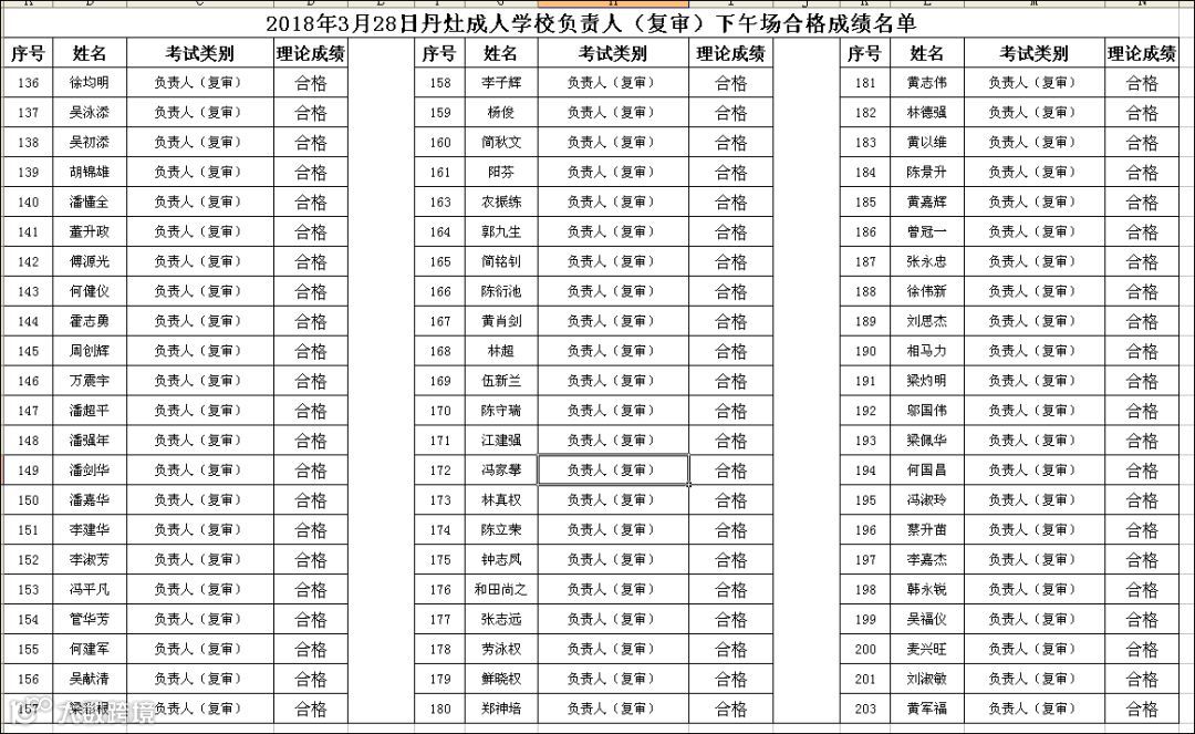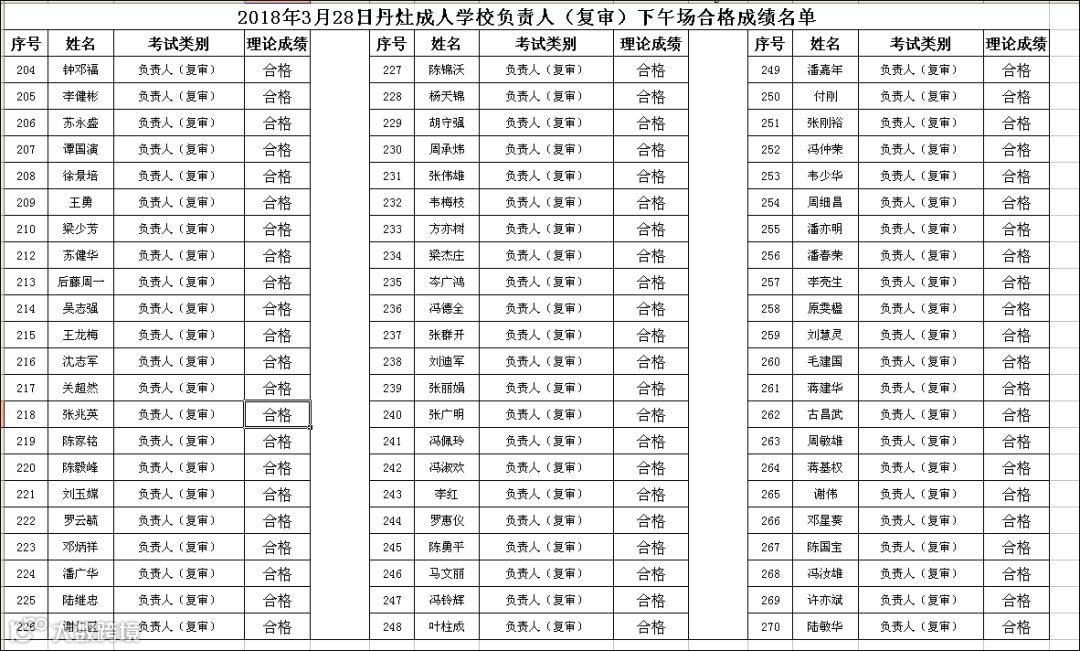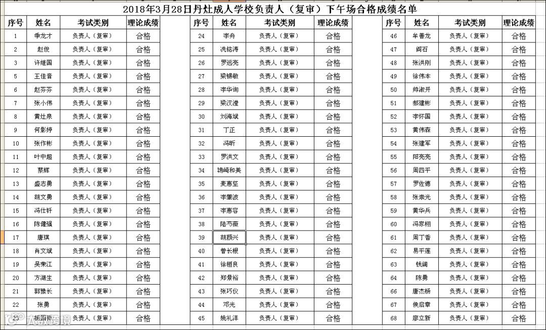 2018.03.28丹灶成校负责人(复审)下午场考试合格名单