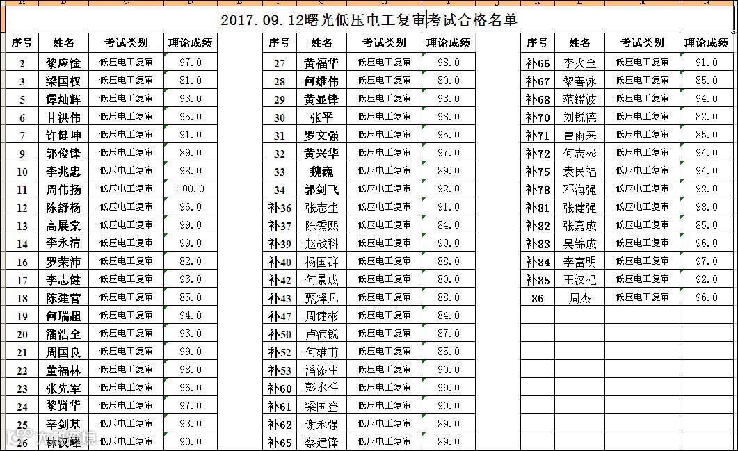 9.12曙光学校低压电工复审合格名单