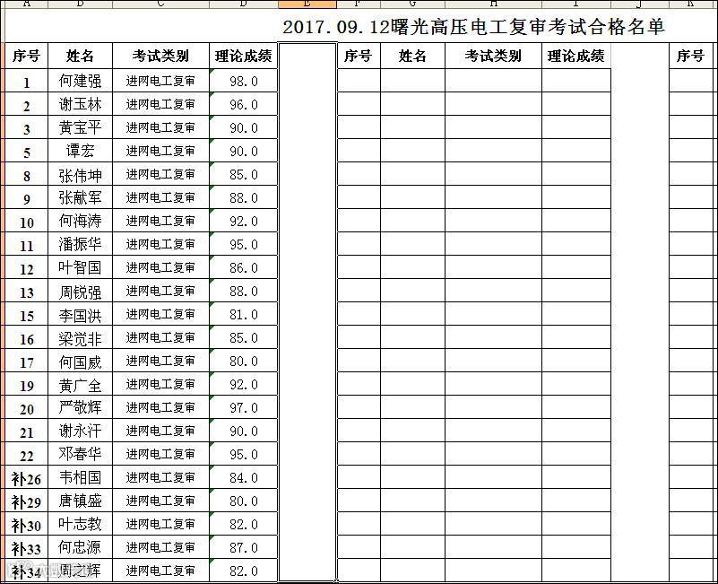 9.12曙光学校高压电工复审合格名单