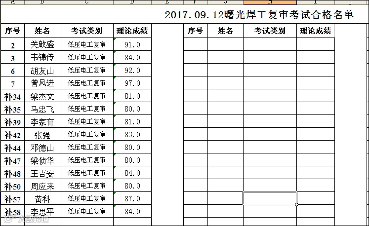 9.12曙光学校焊工复审合格名单