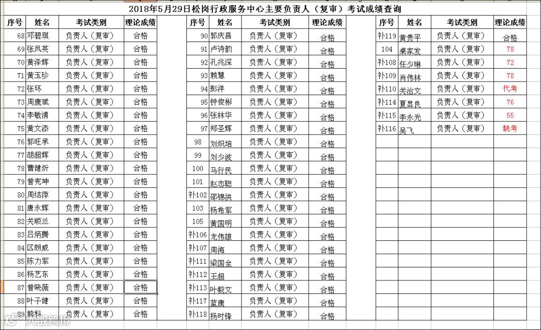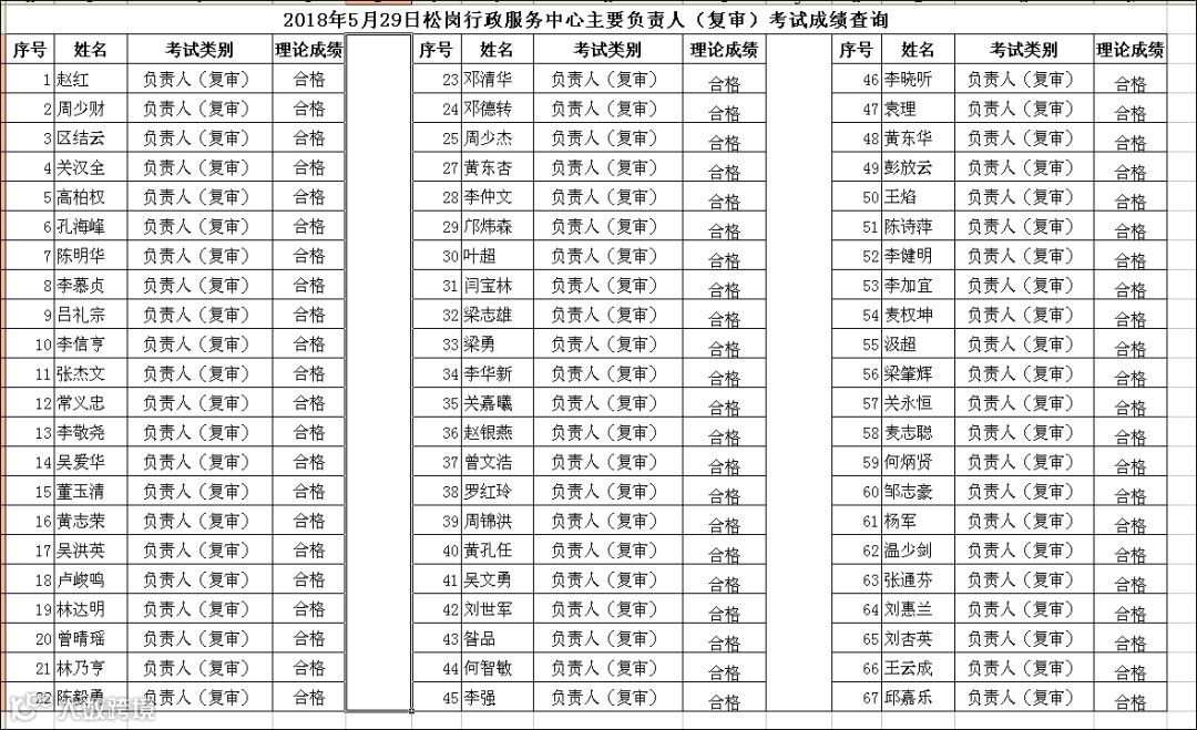导读:2018.05.29松岗行政服务中心主要负责人(复审)考试成绩查询