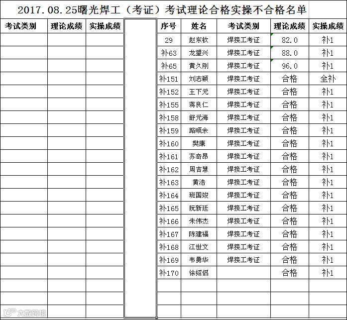 2017.08.25曙光焊工(考证)理论合格,但实操不合格名单