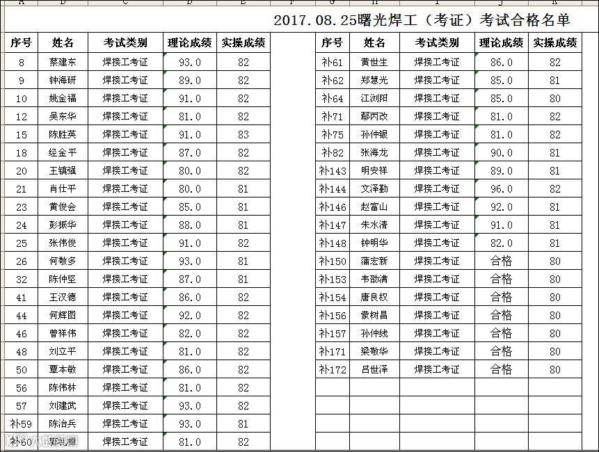 2017.08.25曙光焊工(考证)合格名单