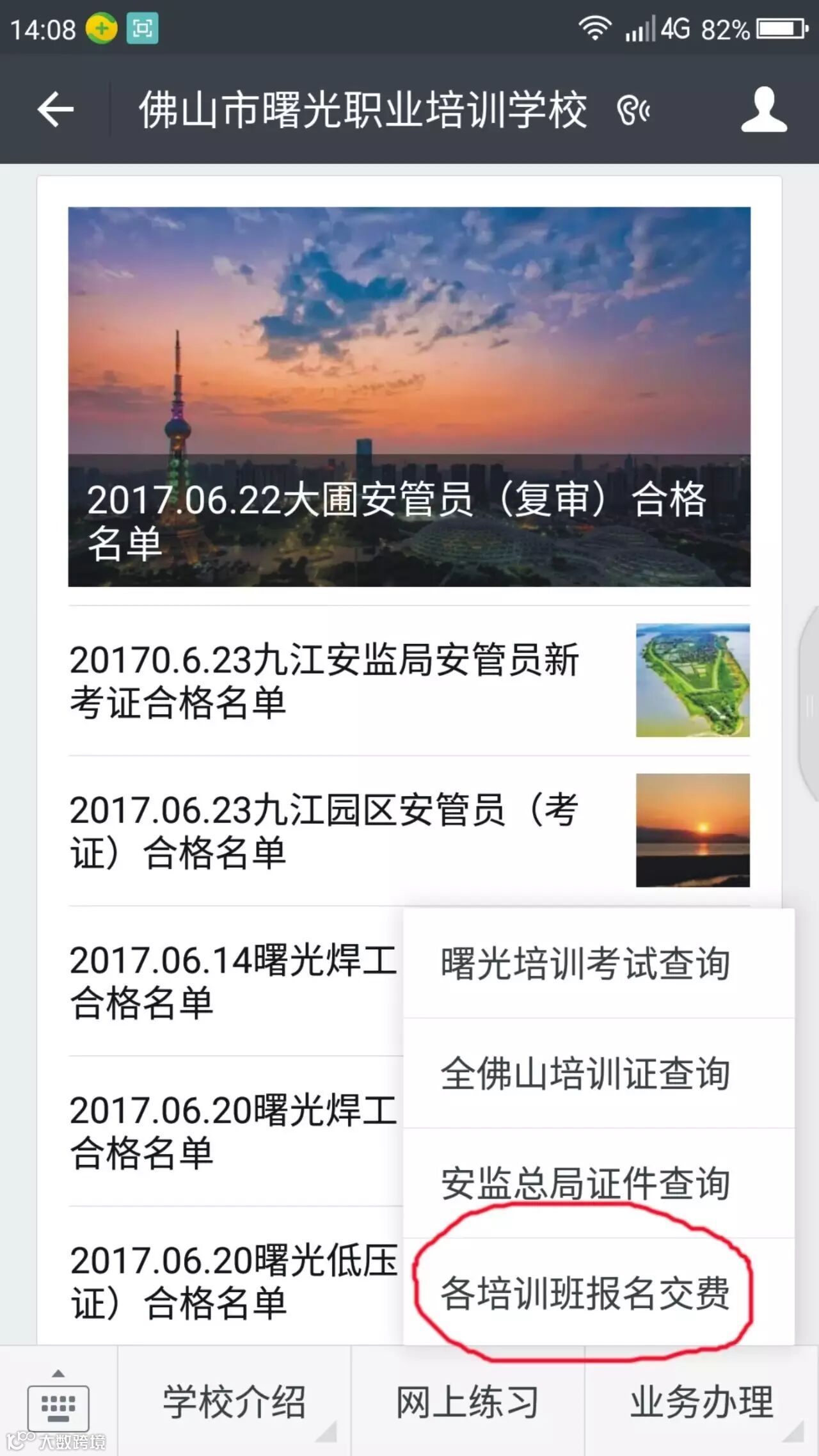 2、之后点击各培训班报名交费: