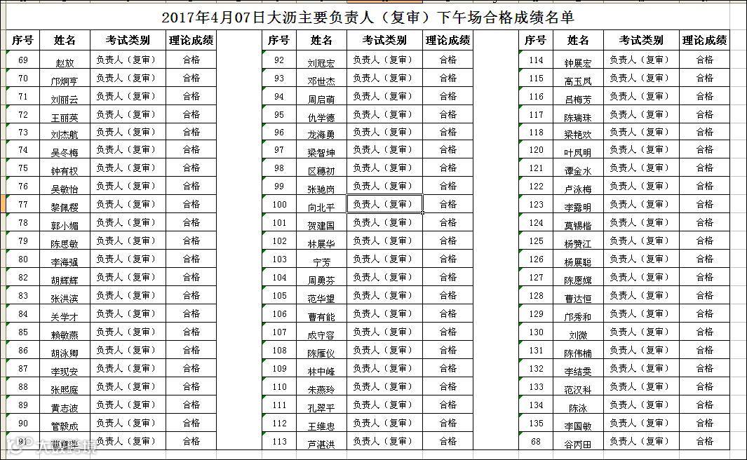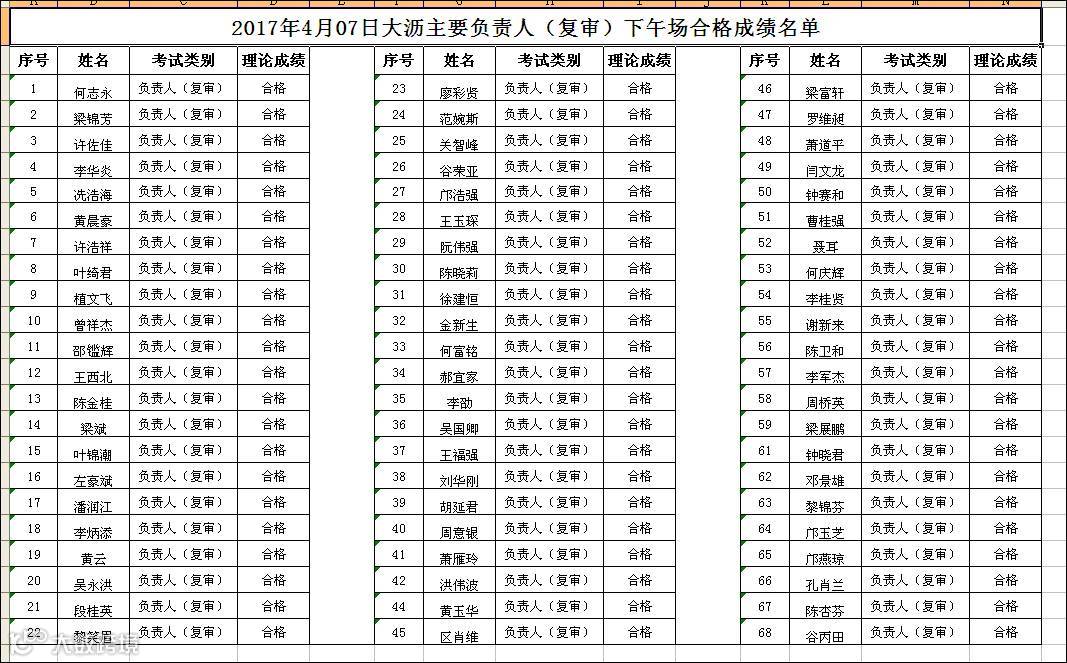 2017.04.07大沥主要负责人(复审)下午场合格名单