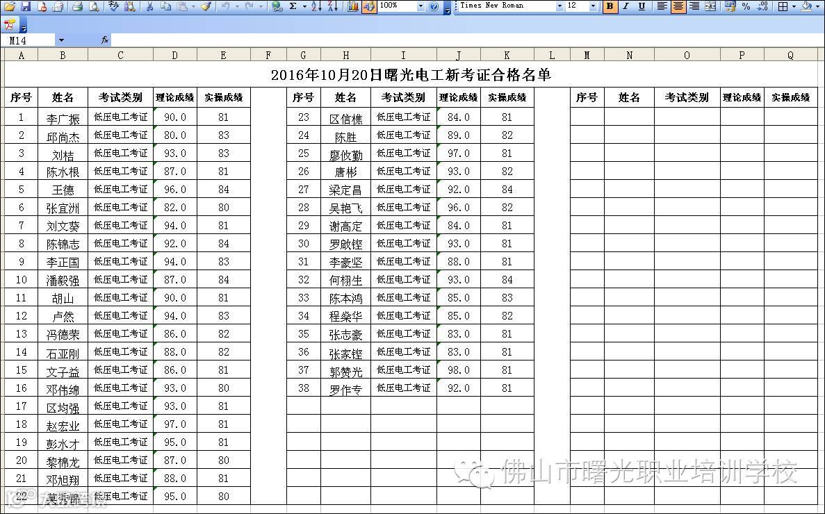 2016.10.20曙光电工考证合格名单(里水成校培训点)