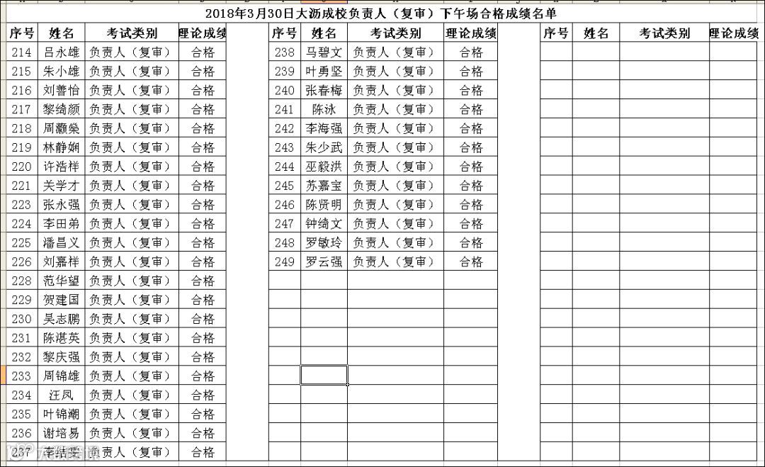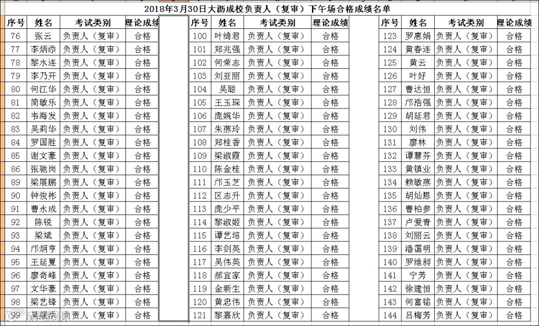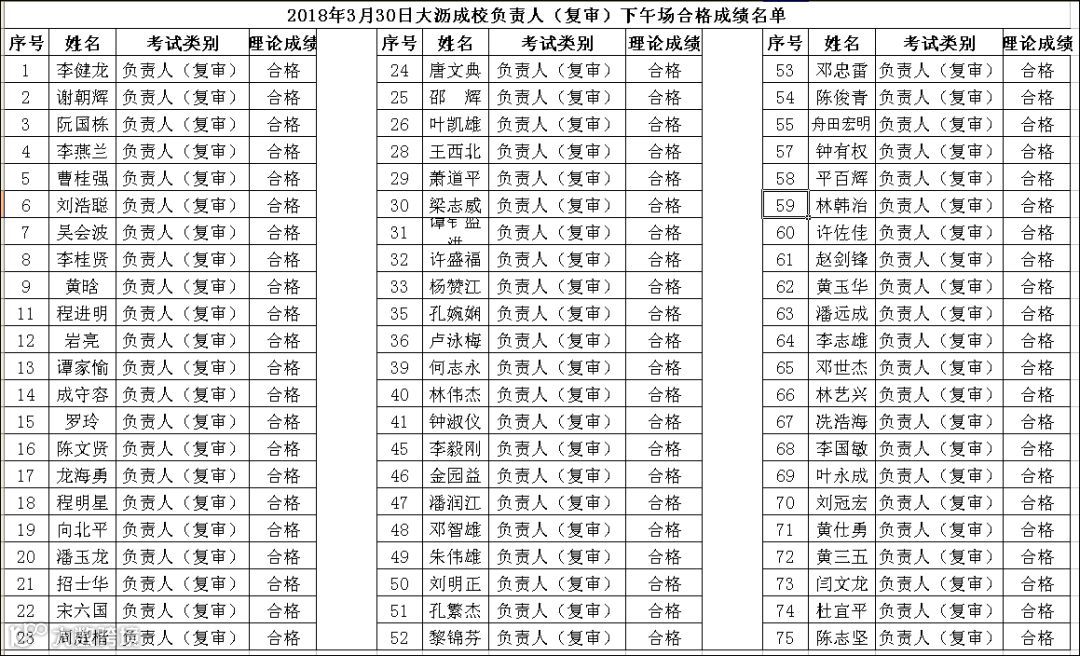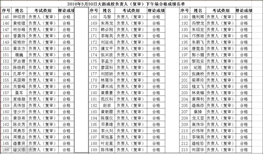 2018.03.30大沥成校负责人(复审)下午场考试合格名单