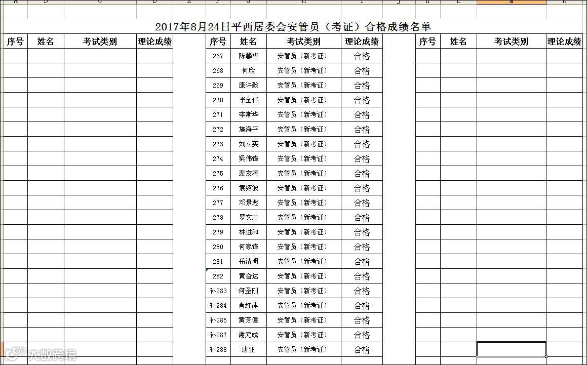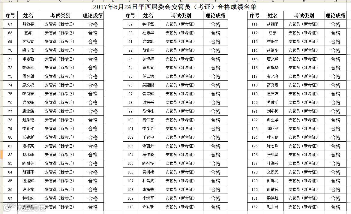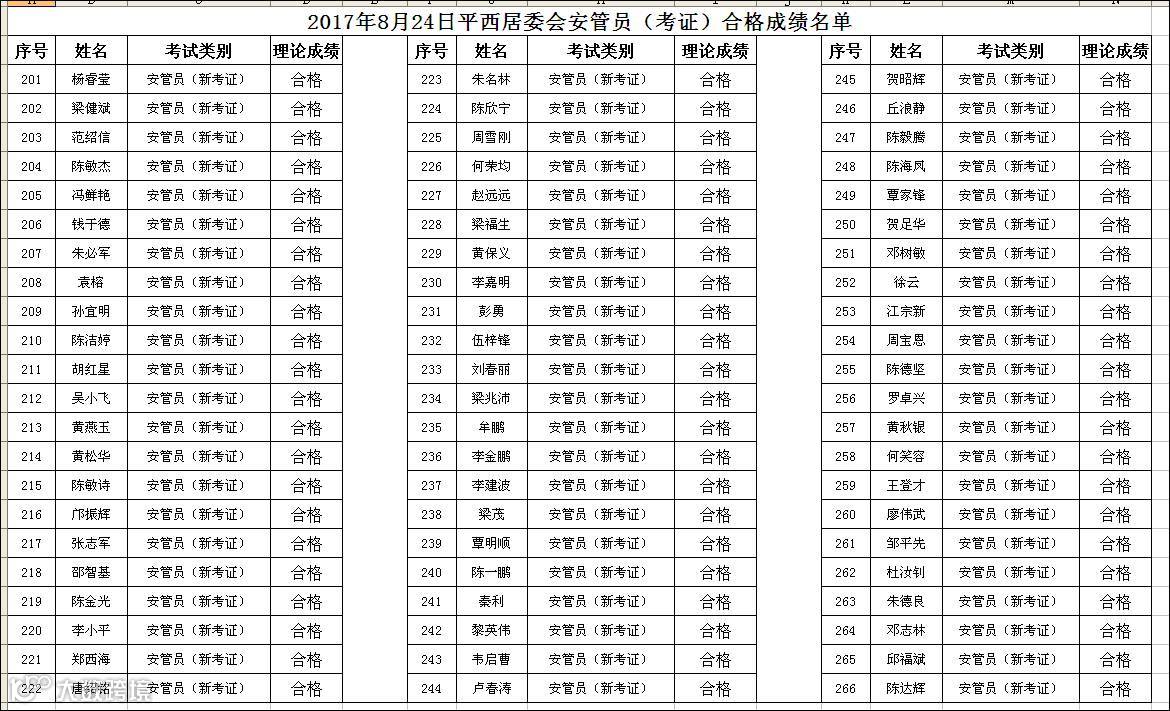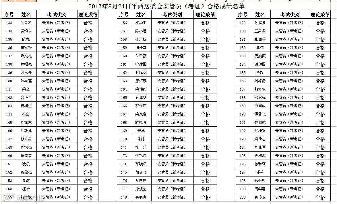 2017.08.24平西居委会安管员(考证)合格名单