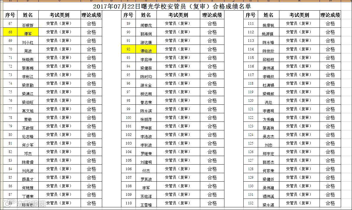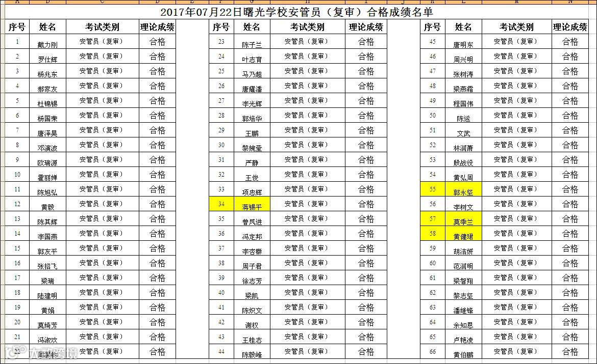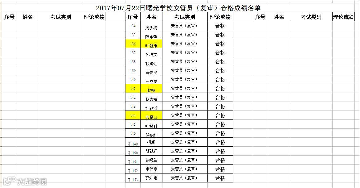 2017.07.22曙光学校安管员(复审)考试合格名单