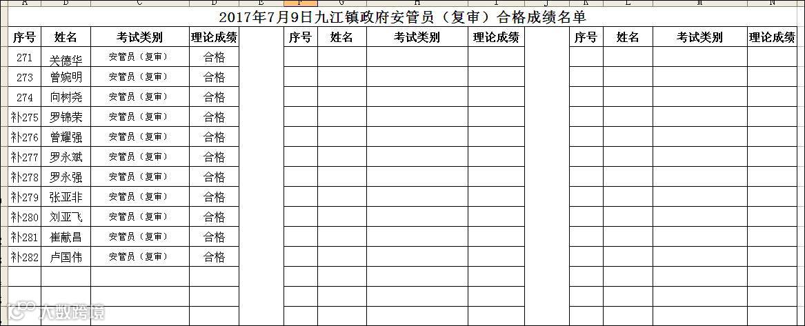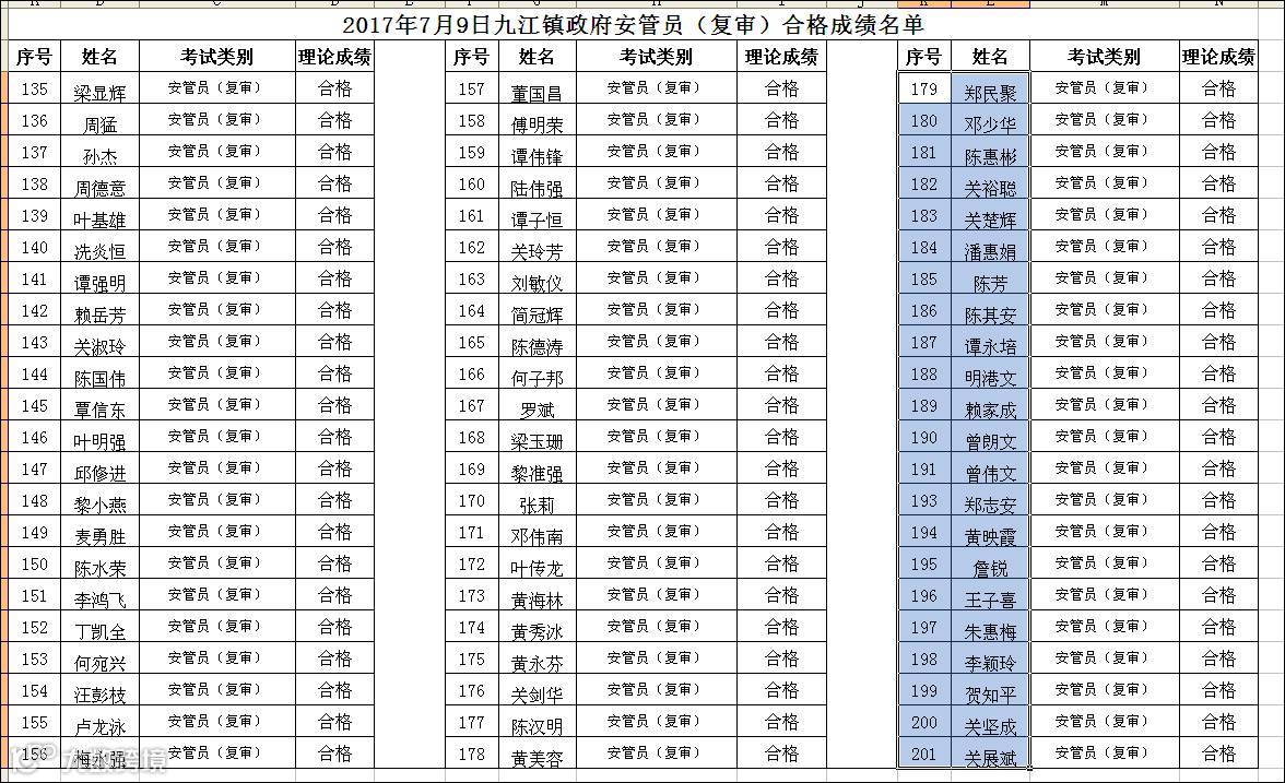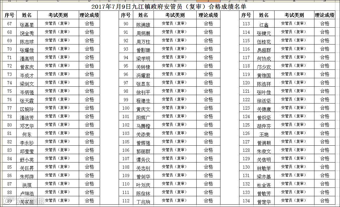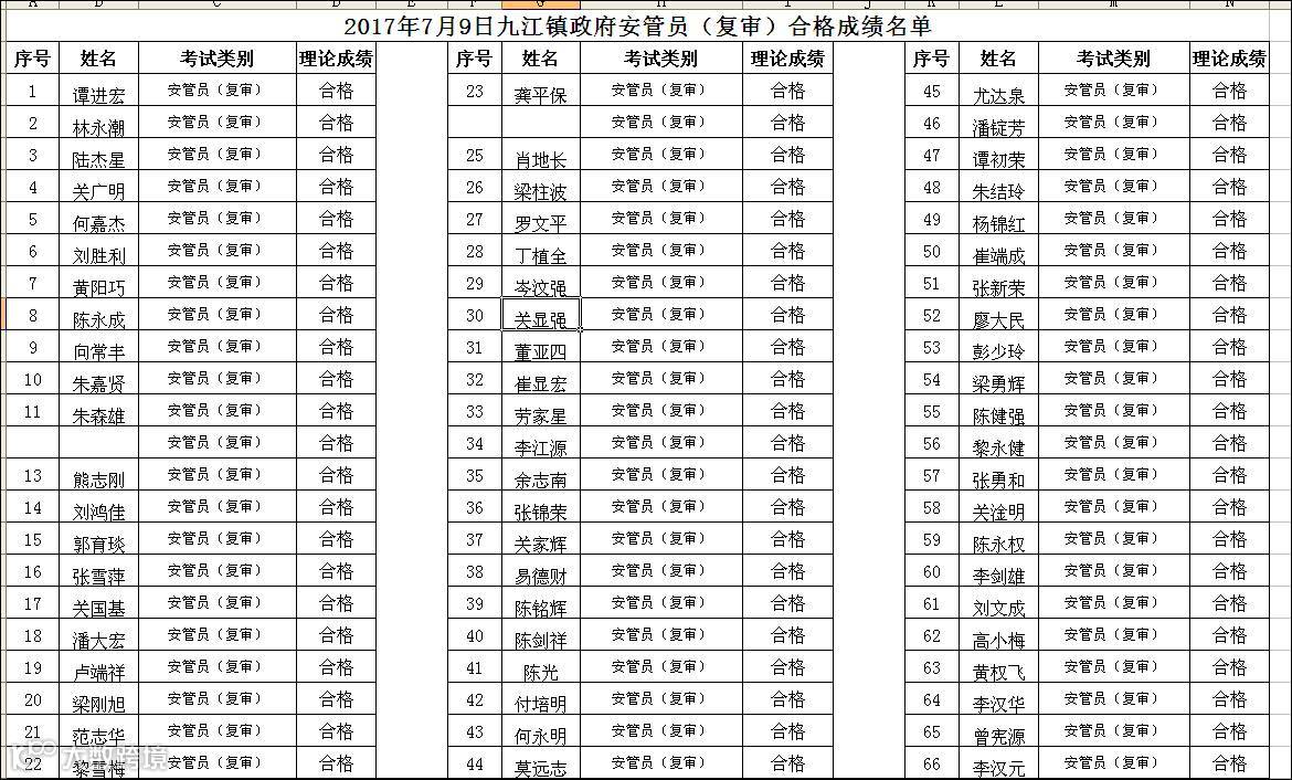 2017.07.09九江镇政府安管员(复审)合格名单