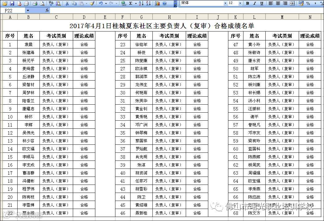 2017.4.1桂城夏东社区主要负责人(复审)合格名单