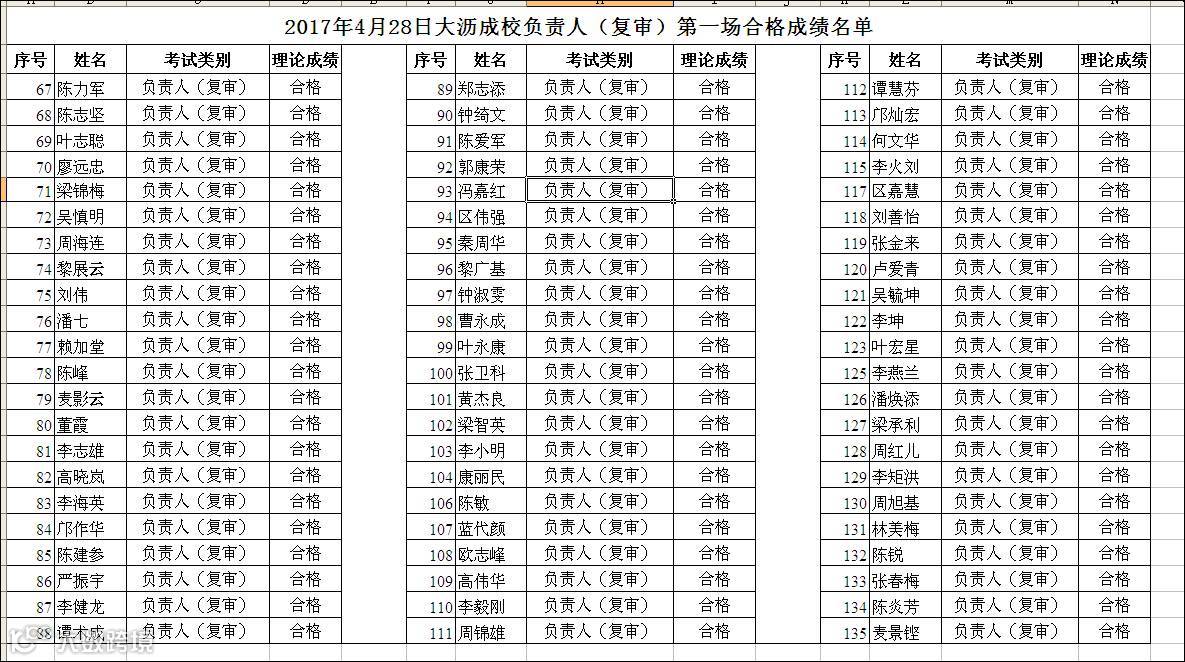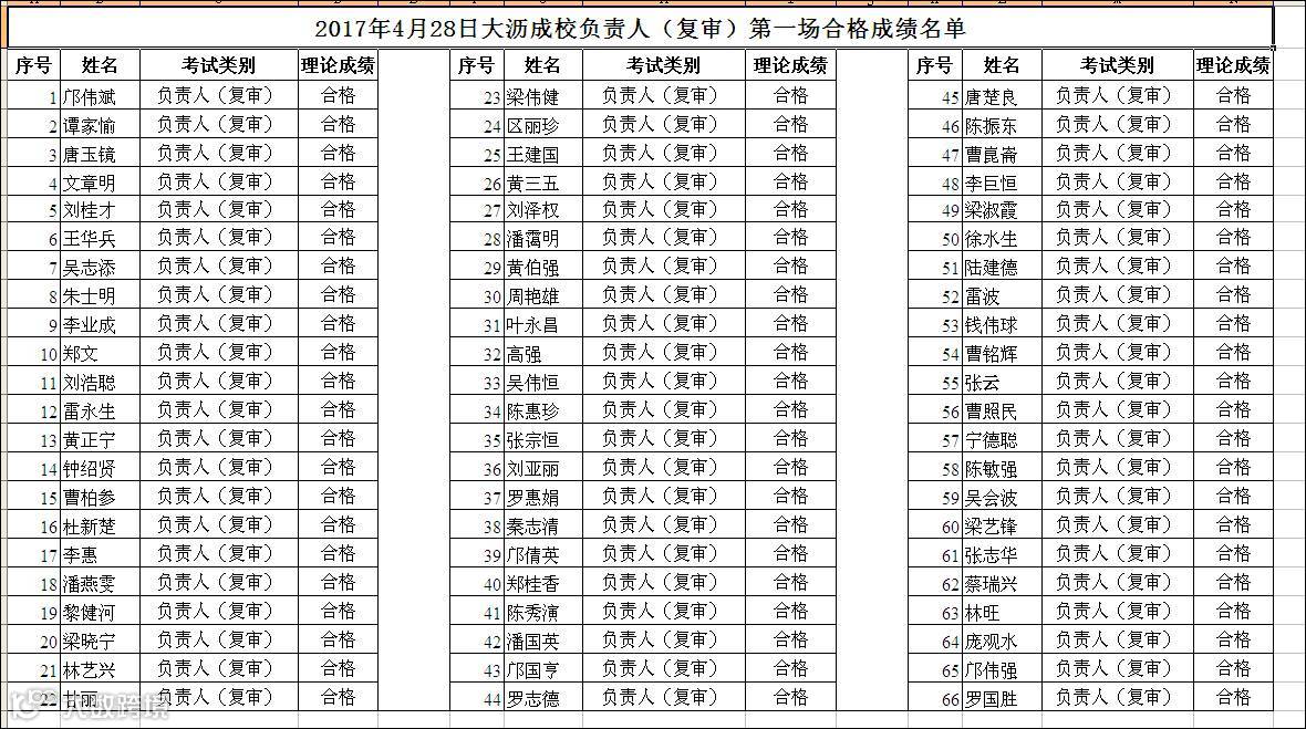 2017.04.28大沥成校主要负责人(复审)第一场合格名单