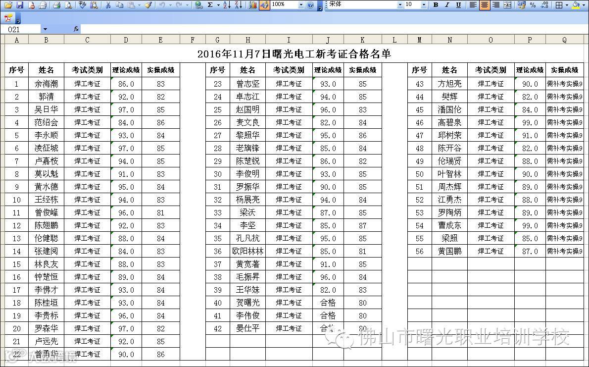 2016.11.07曙光电工新考证考试合格名单 佛山市曙安安全技术服务公司