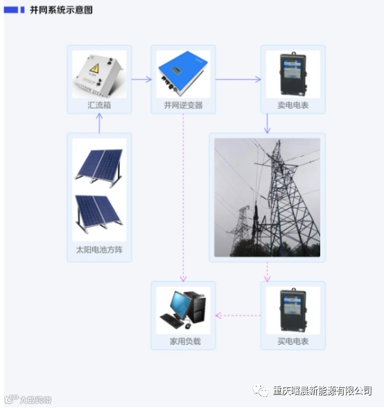 这类系统的优点在于不用电池蓄能,直接与国家电网相连,不用担心停电的情况。